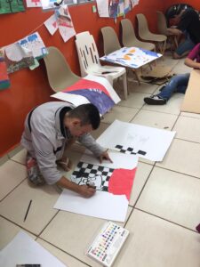 Todas as obras foram produzidas pela educadora do Serviço de Convivência e Fortalecimento de Vínculos, Emanuele, que coordena a oficina “Mãos Criativas” junto com os adolescentes das turmas da manhã e tarde que frequentam as atividades de SCFV da Legião Mirim. Visando uma educação que os ajude a lidar criticamente com a realidade digital, surgiu, a exposição, feita pelos adolescentes e para eles.